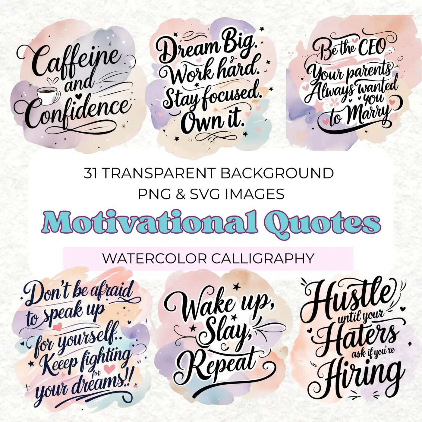 Bring positive energy to your projects with this 31 Motivational Quotes SVG Bundle! Each quote is carefully crafted and comes in watercolor calligraphy style art to match any creative need. Whether you’re working on t-shirts, mugs, tote bags, wall art, or digital designs – this pack has got you covered.