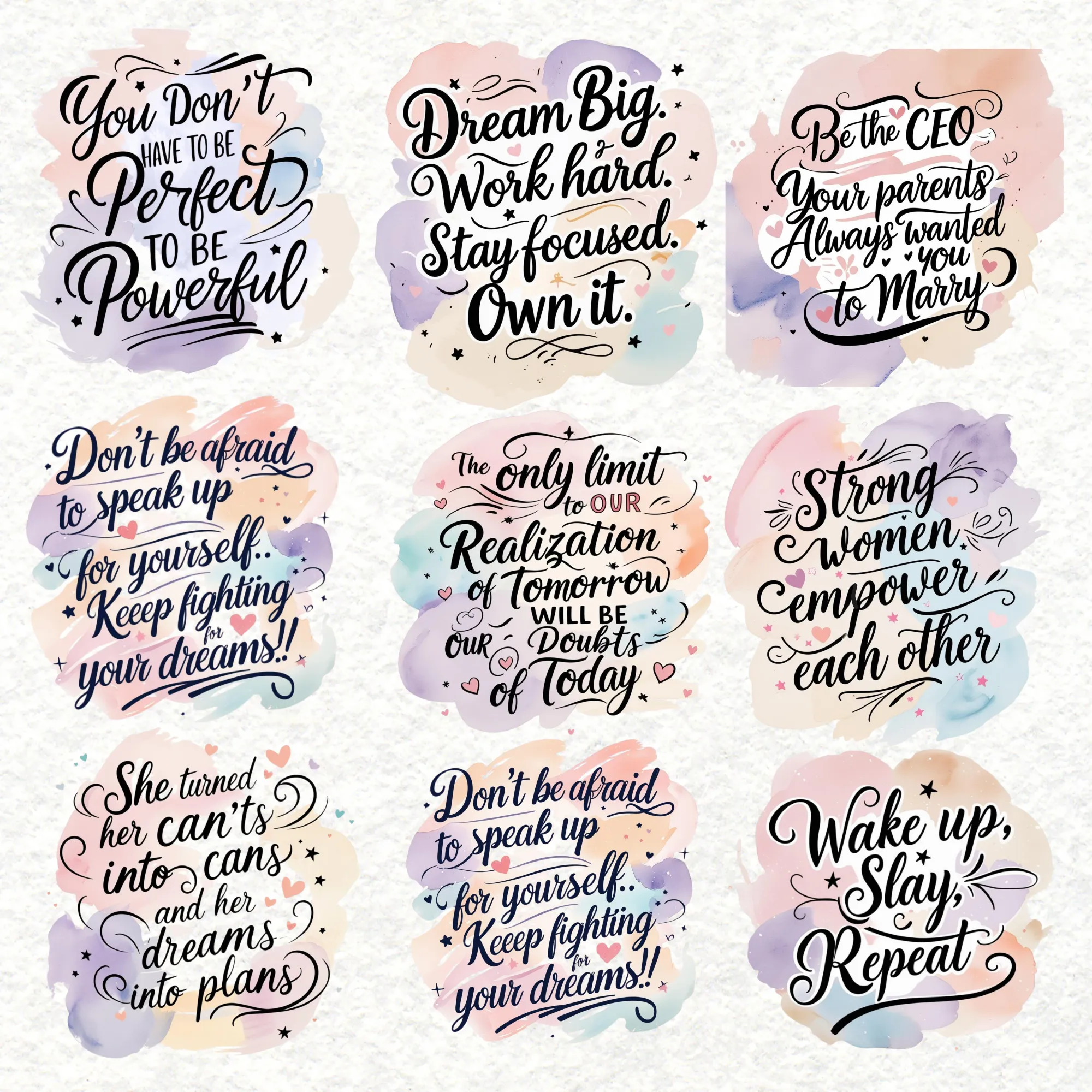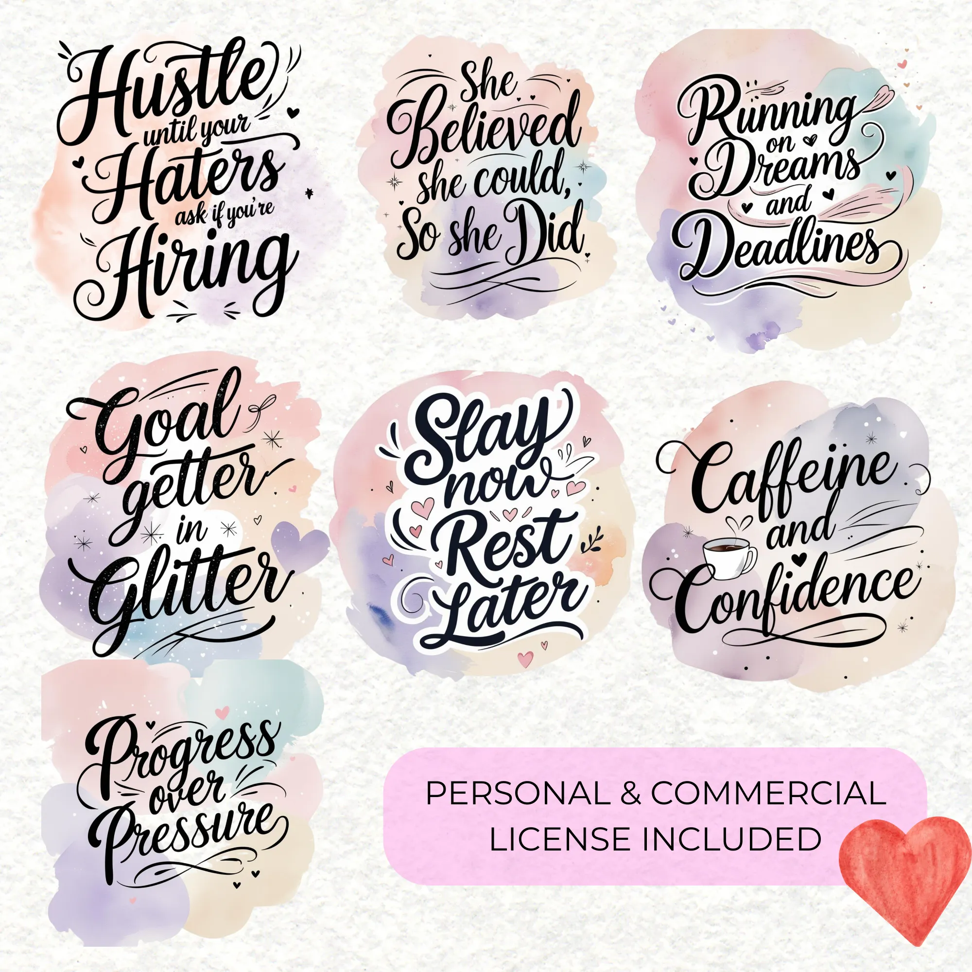 Bring positive energy to your projects with this 31 Girl Boss Motivational Quotes SVG and PNG Bundle! Each quote is carefully crafted and comes in watercolor calligraphy style art to match any creative need. Whether you’re working on t-shirts, mugs, tote bags, wall art, or digital designs – this pack has got you covered.