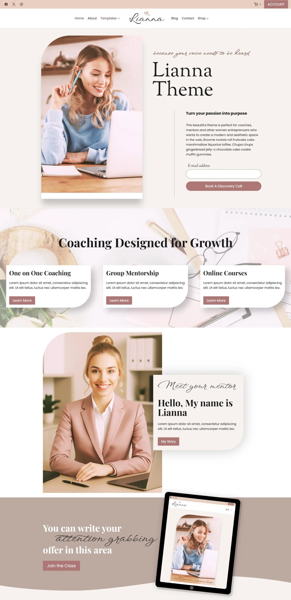 Lianna is a feminine WordPress theme created for coaches, mentors, and passionate service-based entrepreneurs who want a nurturing brand presence that builds trust and converts.